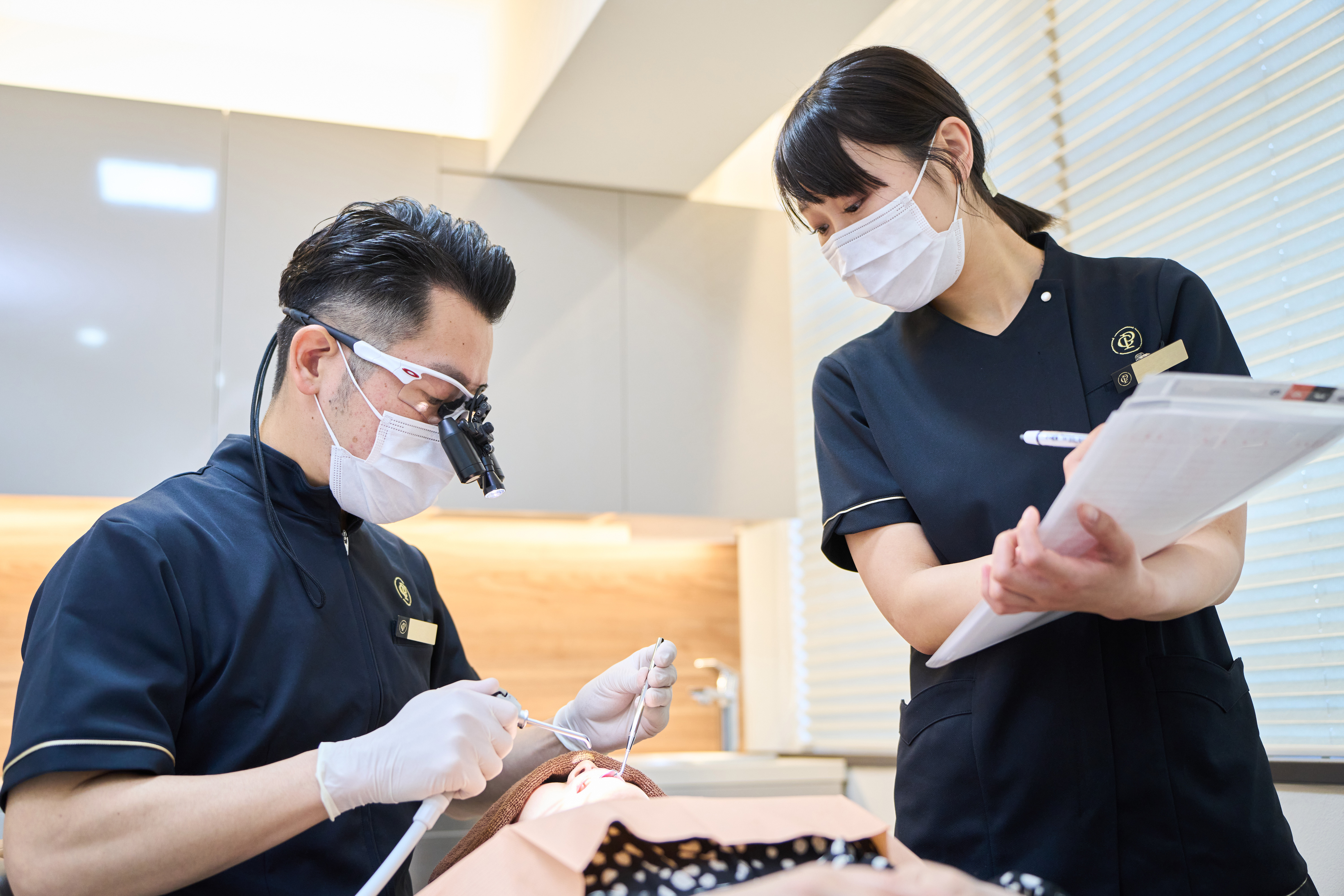 (拡大視野下視診)裸眼ではお口の中の細かい情報を汲み取ったり、小さなむし歯を見つけることは困難です。当院では、拡大鏡(ルーペ)を用い、6倍、8倍などに拡大した環境で細かくチェックを行います。